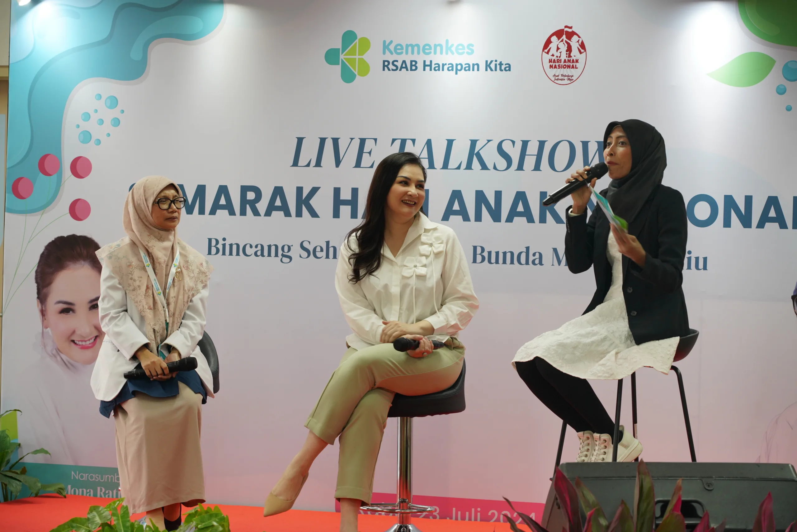 Jakarta, 23 Juli 2025 — Dalam rangka memperingati Hari Anak Nasional 2025, Rumah Sakit Anak dan Bunda (RSAB) Harapan Kita menggelar acara live talkshow “Bincang Sehat” di area Rawat Jalan Eksekutif Edelweis. Acara ini menghadirkan narasumber spesial, Mona Ratuliu, publik figur yang dikenal aktif dalam isu parenting dan kesehatan anak, bersama dr. Eva Devita Harmoniati, Sp.A (K), dokter spesialis anak dari RSAB Harapan Kita.
